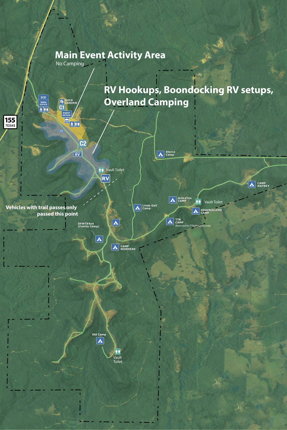 Access to Primitive camping is available throughout the event and included with drive registrations.